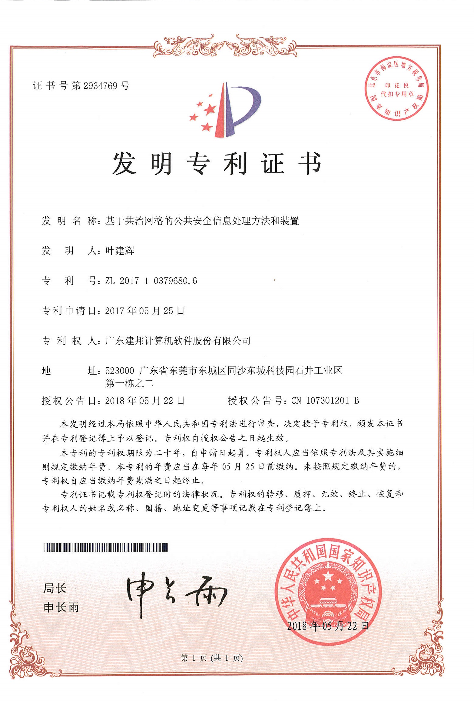 原创发明专利:知识产权是企业发展战略的重要组成部分,也是企业竞争有力的工具和重要资产。建邦软件始终保持专业的自主创新能力,不断优化产品与服务,尊重知识产权,也重视对知识产权的保护。目前,东莞市基层社会治理综合信息支撑平台项目的原创性知识产权成果丰硕:累计申请发明专利50余件,其中已获得国家知识产权局颁发发明专利证书的有“电子政务的实现方法和电子政务系统”、“基于共治网格的监管任务处理方法和装置”等30余件,累计获得计算机软件著作权40余项,并有多项获得2018-2019年度广东省高新技术产品资格。